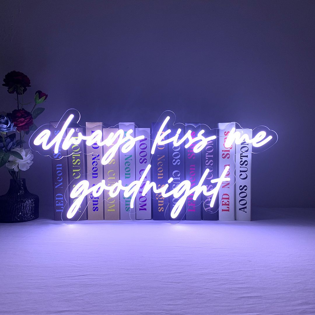 Embrace romance and take a bold step towards love with the Always Kiss Me Goodnight Neon Sign. Let its bright light remind you to always cherish the moments before bed, creating an atmosphere of love and passion. Don't miss out on this unique touch for your space!