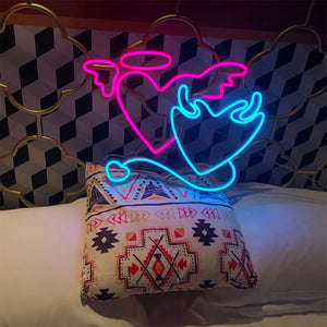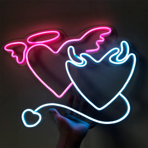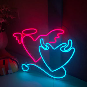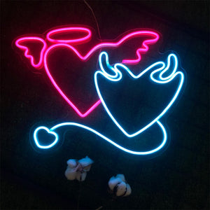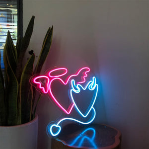 Angel and Demon in Love Heart Neon Light