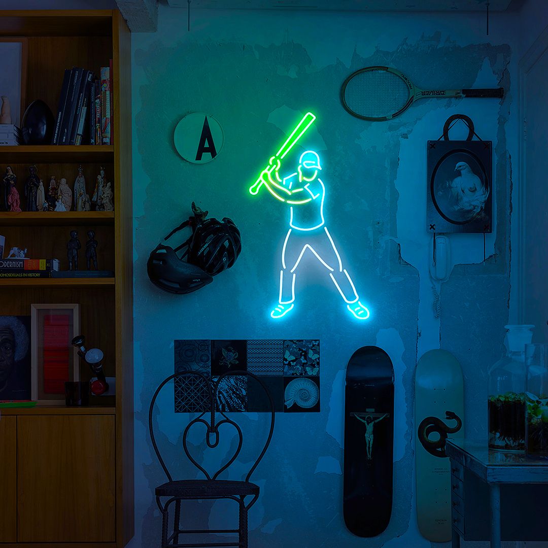 Score a home run with this Baseball Game Neon Sign! Perfect for sports lovers, this sign will light up any room with its bright neon glow. Strike out boring decor and add a playful touch to your space. Batter up!