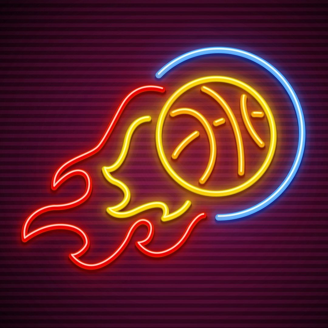 Basketball Ball Flying and Burn Neon Sign