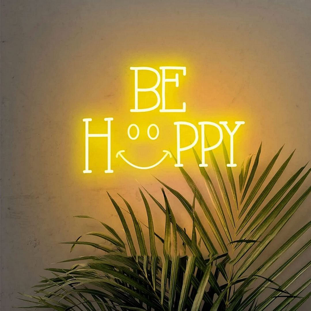 Brighten up any space with our playful and quirky Be Happy Neon Sign. Its luminous glow and bold message serve as a daily reminder to embrace joy and positivity.