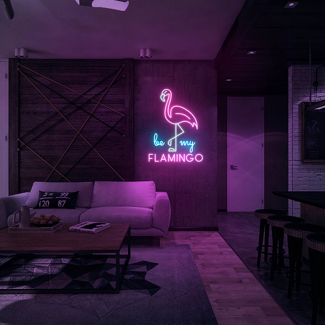 Light up your life with our Be My Flamingo Neon Sign! Featuring a playful design, this sign will add a touch of whimsy to any space. Perfect for parties, bedrooms, or home decor, it's a fun and quirky way to brighten up your day. Don't be a square, get your flamingo on today!