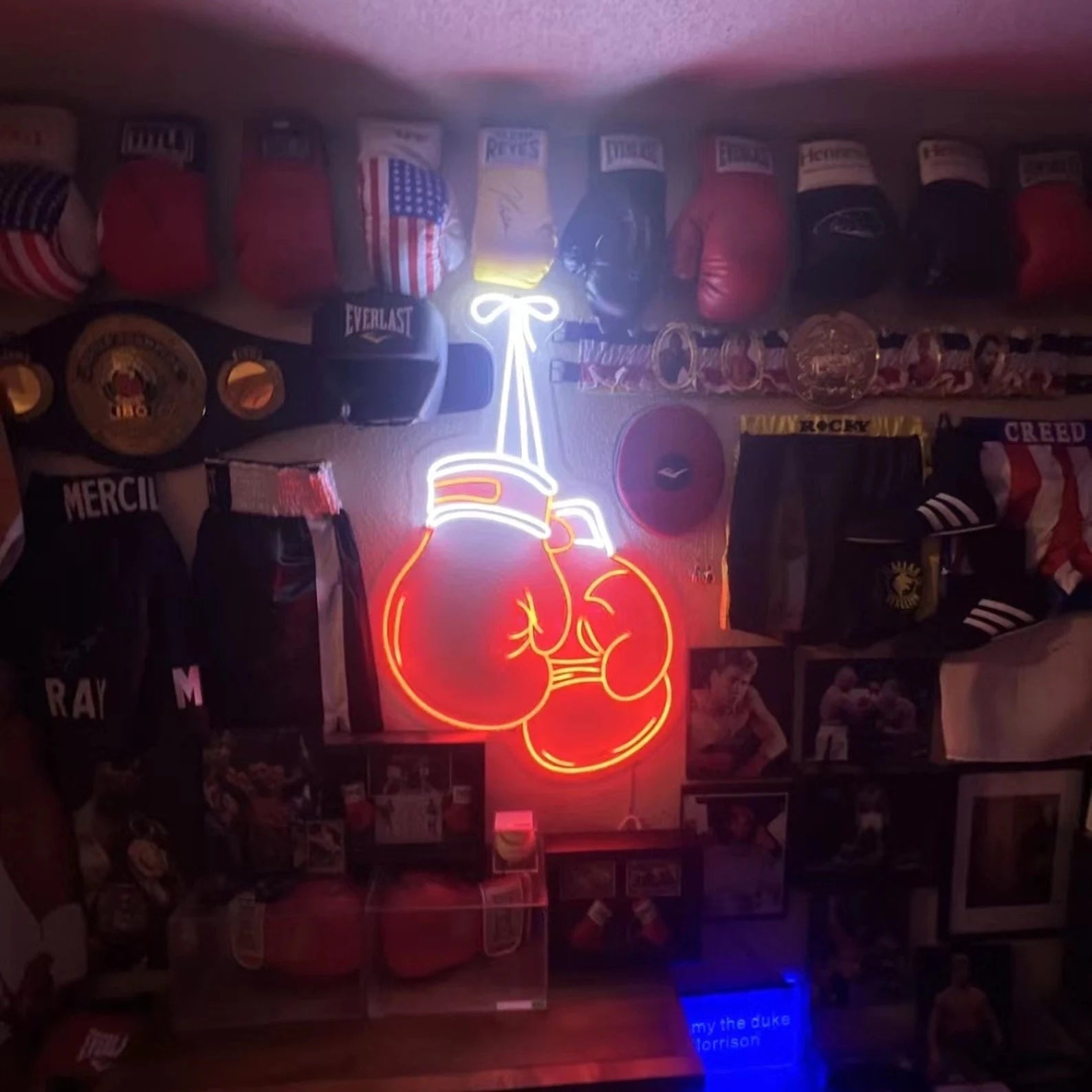 Punch up your space with our neon boxing gloves sign! Bold and bright, this eye-catching sign is sure to pack a punch in any room. Perfect for the gym, man cave, or sports fan in your life. Let this sign be the knockout addition to your decor.