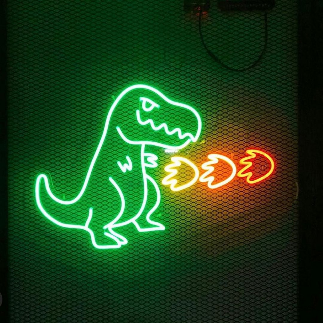 Fire Breathing Cute Cartoon Dinosaur Neon Sign