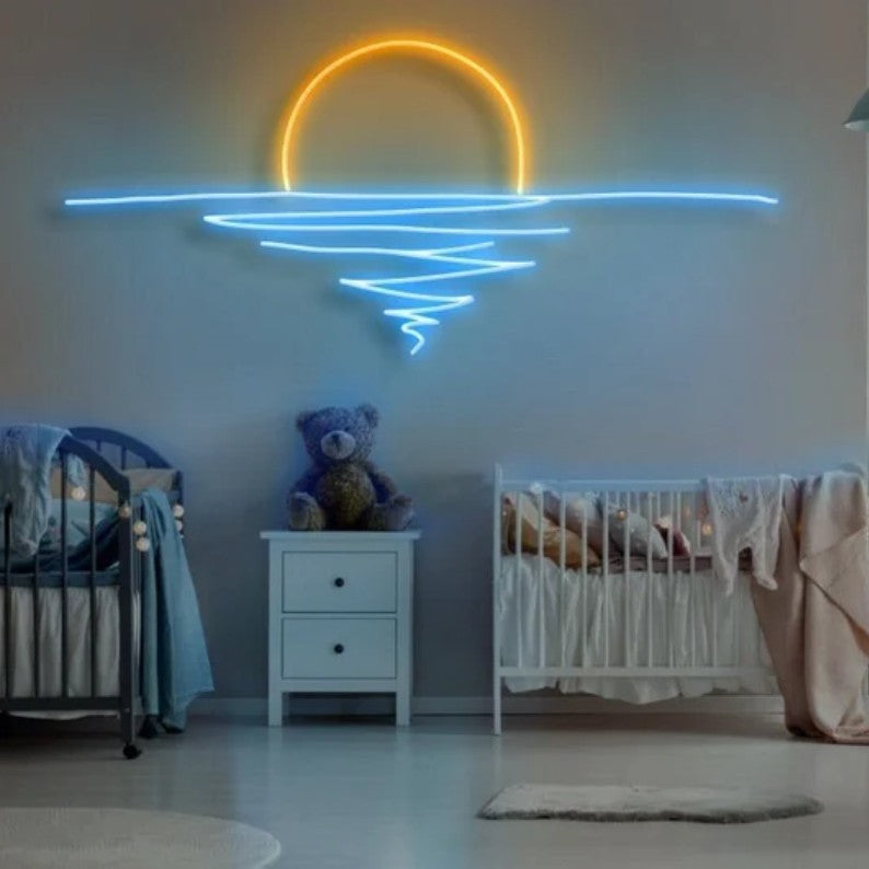 Light up your space with the Sunrise And Sea Neon Sign! This quirky and fun sign adds a playful touch to any room. Experience the ultimate chill vibes with a beautiful sunrise and sea design. Perfect for brightening up any space and creating a unique atmosphere. Shine on!